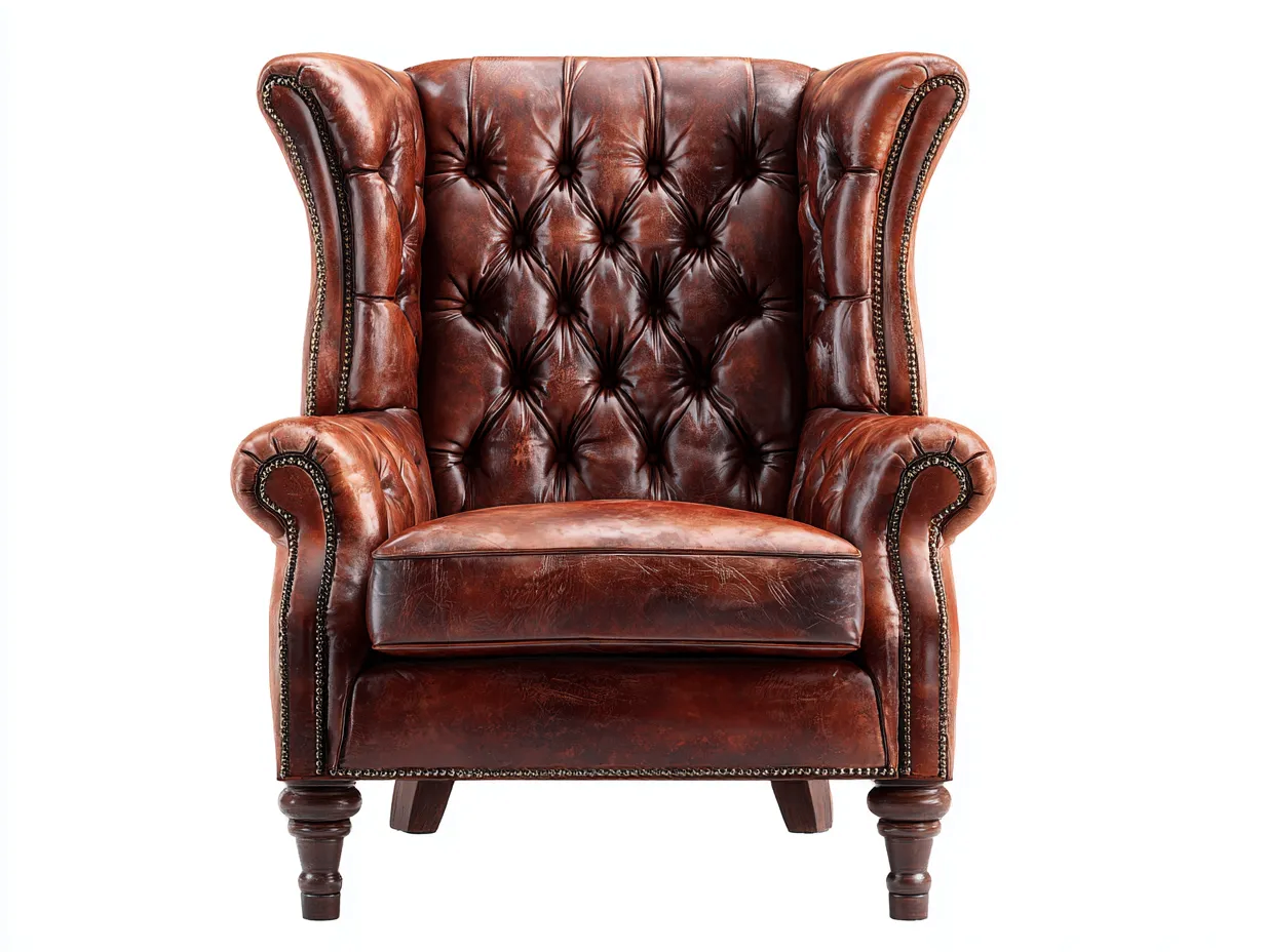 Ohrensessel - Leder-Holz - 85x96x114 cm - Braun - Klassisch