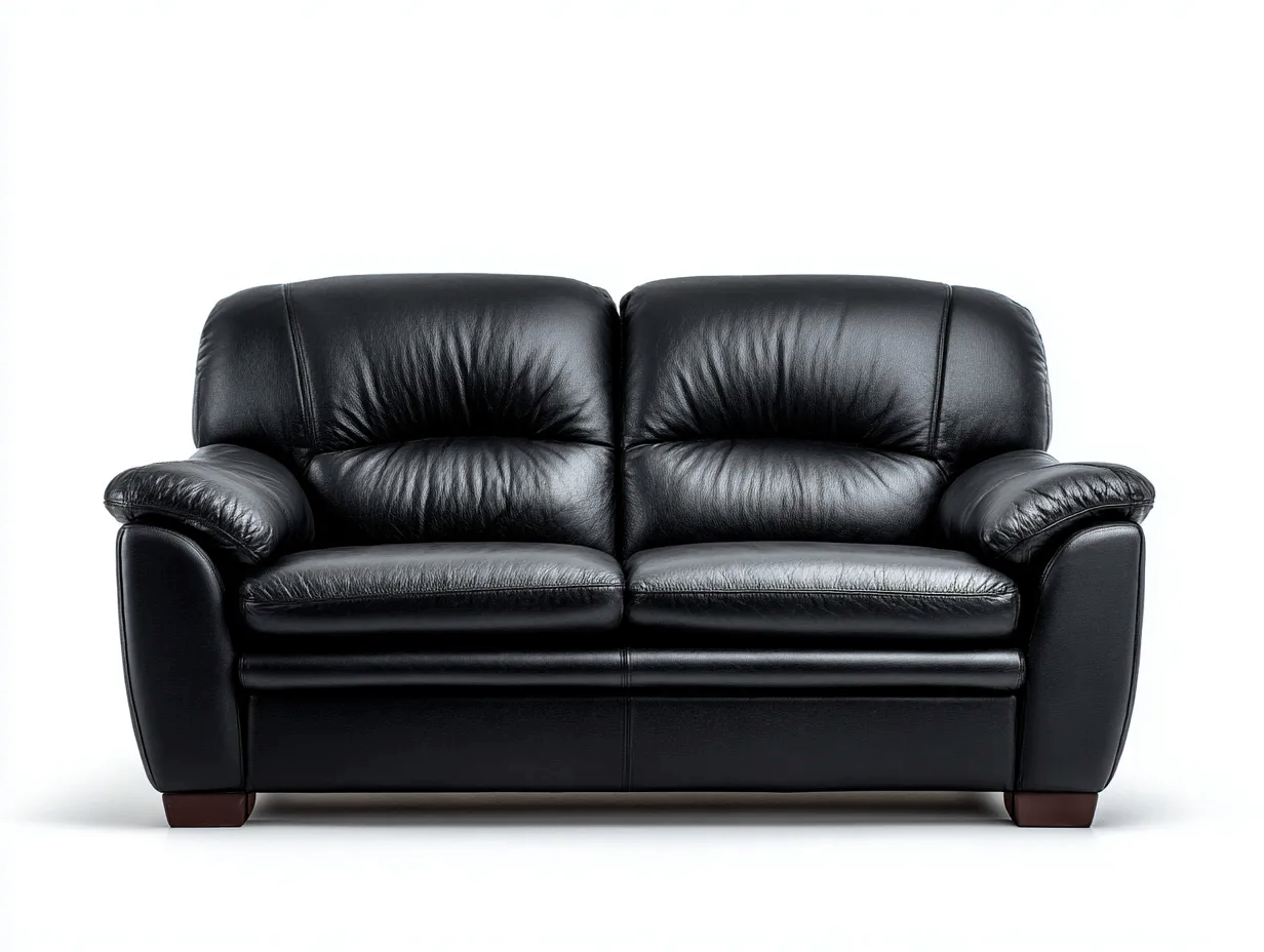 Der Bezug aus Echtleder in Schwarz bietet eine gleichmäßige Oberfläche mit angenehmer Haptik. Sorgfältig verarbeitete Nähte, formstabile Sitzflächen und weich gepolsterte Armlehnen sorgen für eine langlebige Nutzung und ein stimmiges Gesamtbild.
